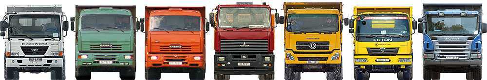 | Daewoo Novus K6DRF-6x4DUMP | КамАЗ-6520 | КамАЗ-6520-010-19 | МАЗ-650108-030-062 | Dongfeng DFL3251A | Foton Auman 1280W | Scania P380CB6x4EHZ | |