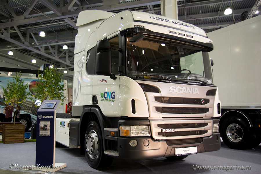 Посетителям был представлен газовый грузовой автомобиль P340 с двигателем OC 09 G102 мощностью 340 л.с. и колёсной формулой 4х2. Двигатели конвертированы из дизельных агрегатов, работают по циклу Отто и созданы на основе новейшей платформы 9-литровых 5-цилиндровых рядных двигателей стандарта Евро-6. Оборудование функционирует при температуре окружающего воздуха до — 40С и полностью адаптировано к российским условиям эксплуатации. Газовые двигатели отличают распределенный впрыск, индивидуальные катушки зажигания и дроссельная заслонка с электронным управлением. В остальном силовой агрегат максимально унифицирован с дизельными моторами, благодаря чему сервисное обслуживание газовых автомобилей Scania можно осуществить в любом официальном сервисном центре Scania.