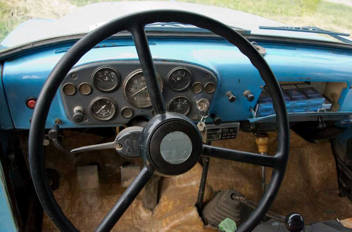 У сидений водителя и пассажиров грузовика — цельное исполнение. Кабина просторная, в ней с комфортом размещались люди в зимней одежде. Для инструментов, деталей, личных принадлежностей есть специальные отсеки.