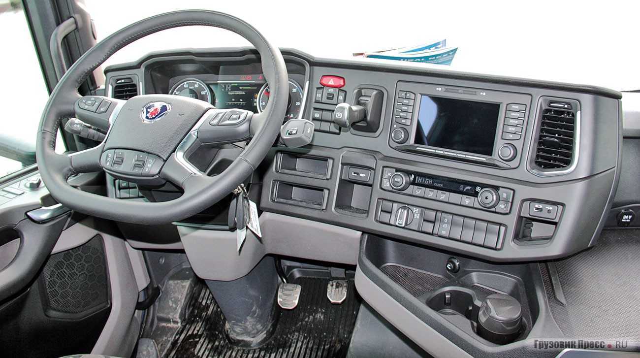 Возможно, тем, кто прежде водил различные устаревшие концептуально седельные тягачи, это будет непривычно. Но вскоре и они привыкнут. Во-вторых, габариты кабины соответствуют принятым на сегодня стандартам.