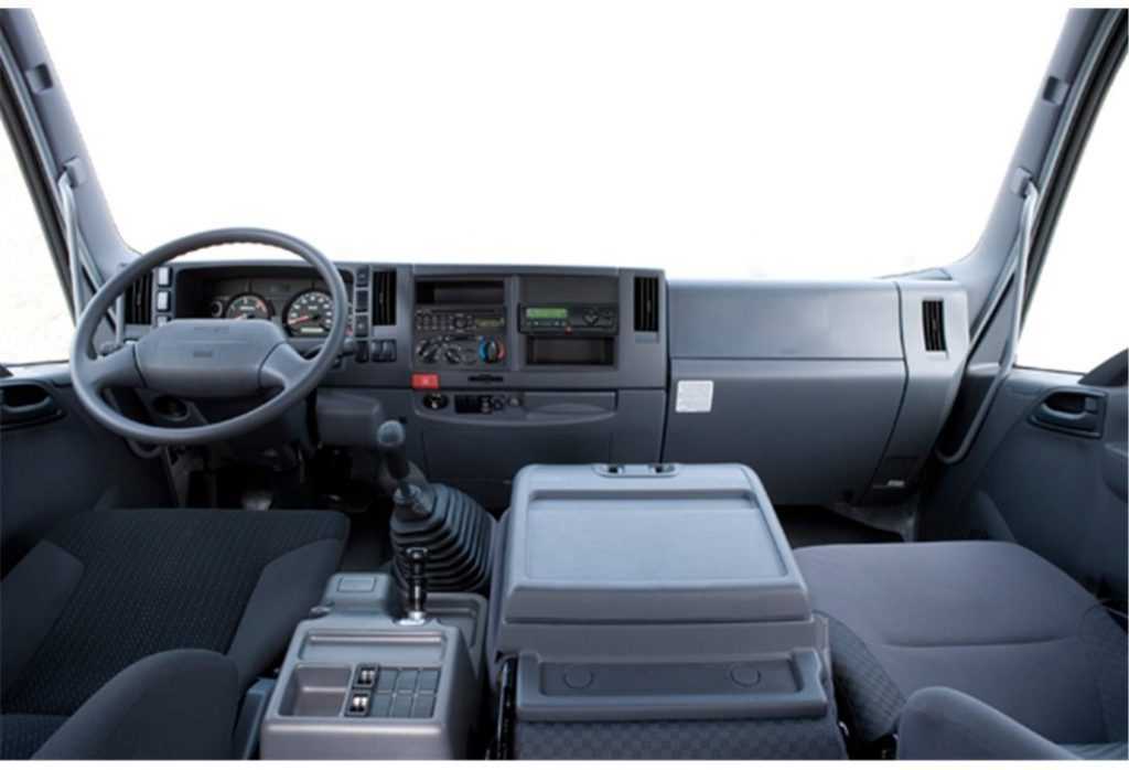 Внутри кабины Исузу Форвард комфорт, уют и сплошное удобство. Чтобы попасть в нее особых усилий не потребуется. На входе расположены удобные поручни, а ступеньки имеют антискользящее покрытие. Сидения, установленные в грузовике, являются особой его гордостью. Помимо удобной анатомической конструкции они оснащены массой регулировок, подогревом, вентиляцией.