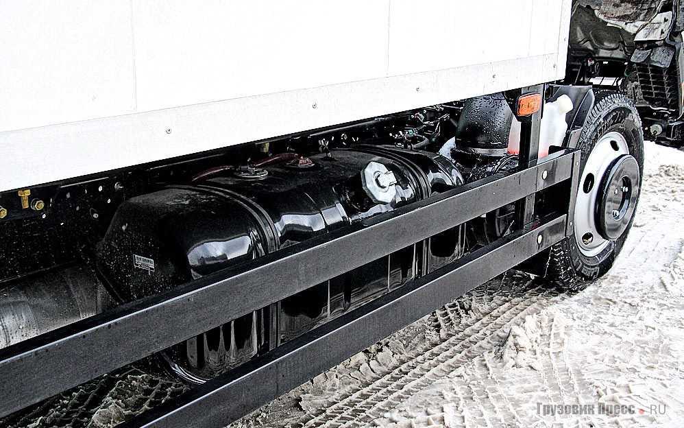 Топливный бак объёмом 75 литров (в версии с полной массой 3,5 т) или 100 литров (у 5,2 т) обеспечивает грузовичку довольно приличный запас хода в любом режиме работы. Топливный фильтр с подогревом и с сепаратором воды – совсем не лишний при эксплуатации автомобиля в зимний период.
