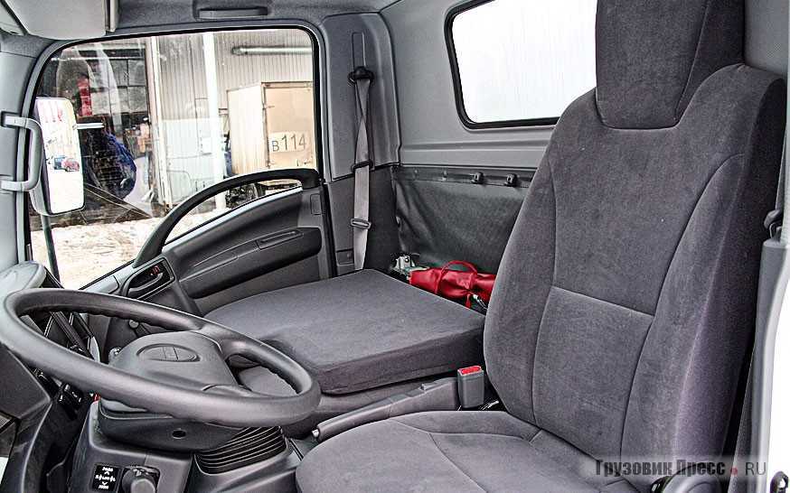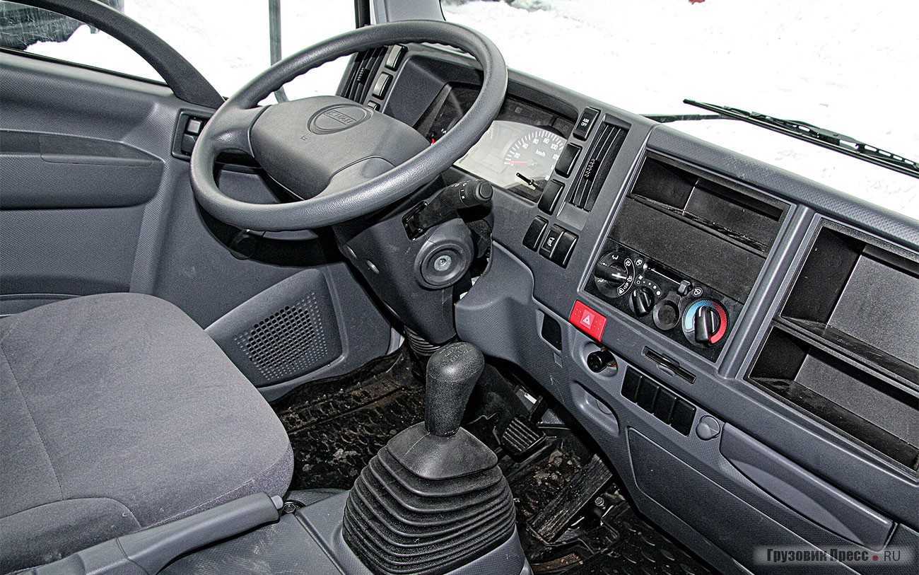 Визуально кабина может показаться небольшой – за счёт небольших для грузовика 16-дюймовых шин, визуально принижающих шасси, а также высокого и объёмного фургона, несколько «нависающего». Но на самом деле она достаточно велика и просторна. Автомобиль оборудован трёхместной кабиной. В которой, однако, втроём мужчинам солидной комплекции или в зимней одежде может быть тесновато. Места для ног будет достаточно всем – и водителю, и его пассажирам.