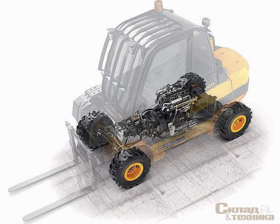 Модель 540-170 оснащена четырехцилиндровым двигателем с турбонаддувом мощностью 100 л.с. (можно заказать и более мощный 130 сильный двигатель с промежуточным охлаждением). Коробка переключения передач – четырехступенчатая, включает по четыре передних и задних передачи. Груз поднимается на высоту до 16,7 м, грузоподъемность – 4 т.