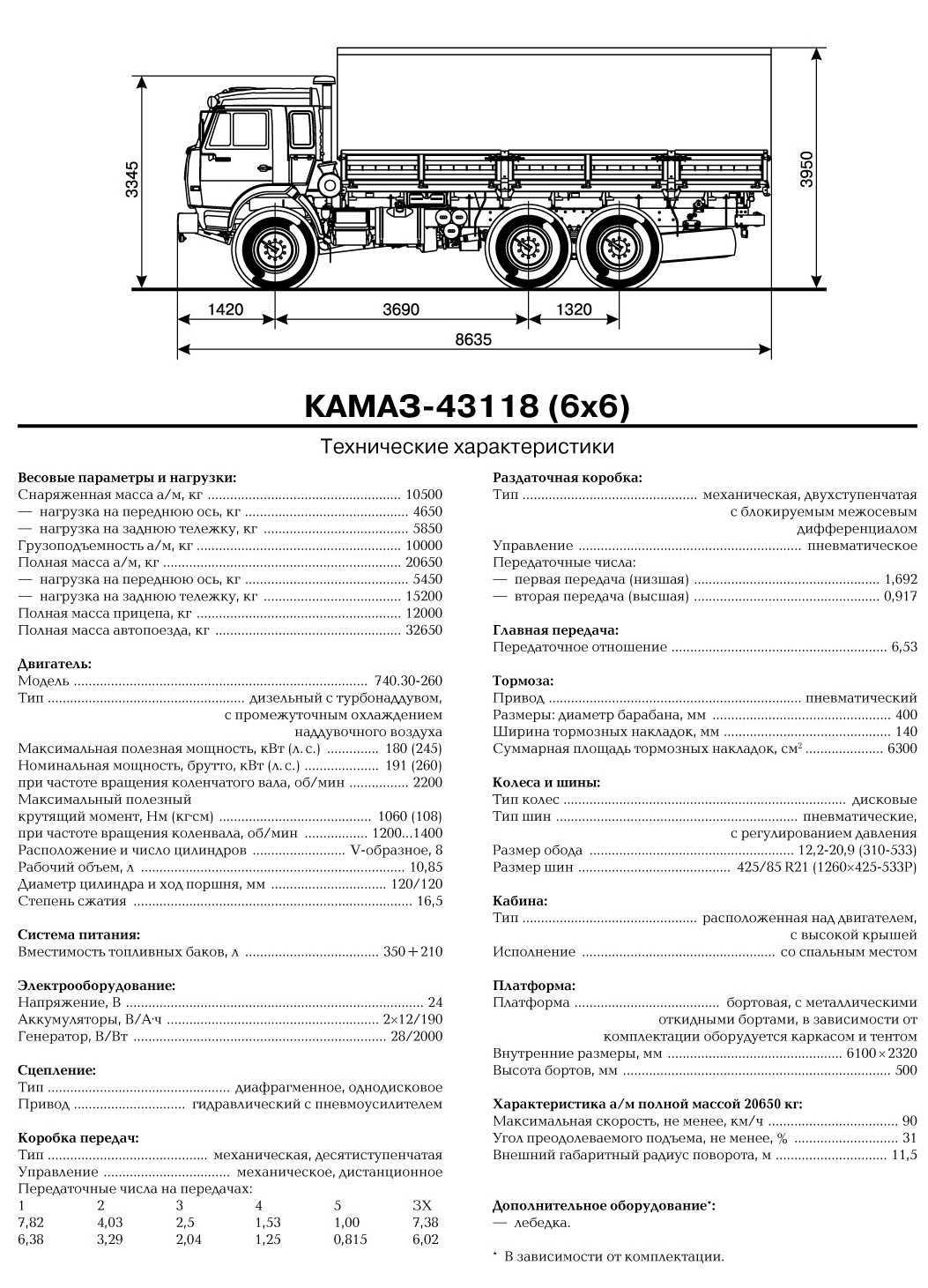 Операции по техническому обслуживанию (ТО) и ремонту прописаны в руководстве по эксплуатации КамАЗа-43118. Инструкция включает в себя паспортные данные о машине, рекомендации по ежесменному, еженедельному и сезонному ТО.