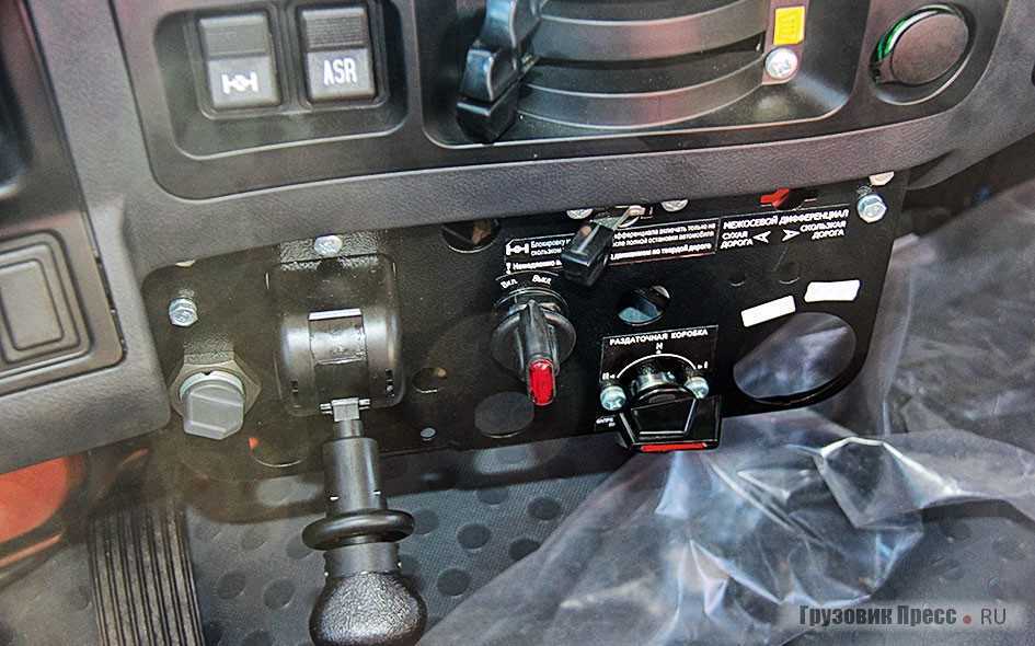 Продуманная конструкция грузовика позволяет использовать его в условиях Крайнего Севера и Сибири. Помогает в этом и надежная импортная 16-ступенчатая механическая коробка передач ZF16S.