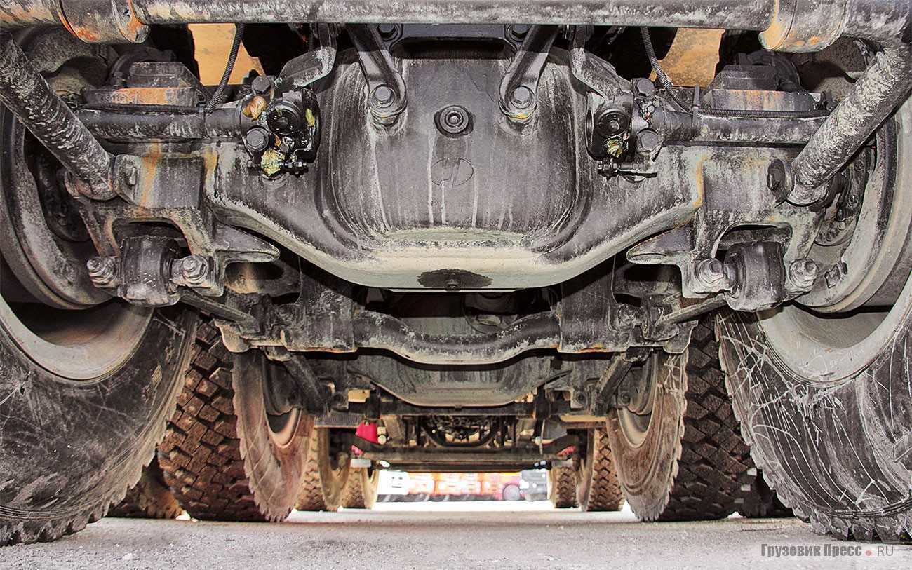 В Набережных Челнах на предприятии ZF-Кама производятся две модели очень хороших КП. Это 9-ступенчатая Ecomid и 16-ступенчатая Ecosplit. Но они, к сожалению, не подходят для 50 т полной массы и по максимальному крутящему моменту предлагаемых двигателей. Поэтому в нашем тяжёлом шасси трудится другая коробка ZF, модели 16S 2225 TO из Германии. Она способна работать с крутящим моментом до 2300 Н·м.