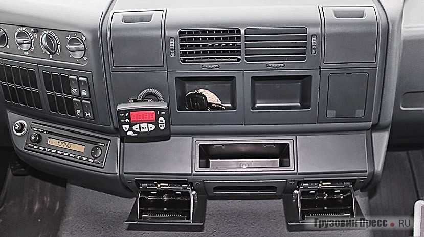 В отличие от многих конкурентов, интерьер MAN TGL без претензий на роскошь. Всё добротно, в меру солидно и основательно, детали аккуратно подогнаны, пластик неплох, но никаких кожаных оплёток рулевого колеса, блестящих хромированных ободков на приборах, вставок под дерево. Это однозначно кабина грузовика. Но стекло панели приборов действительно с антибликовым эффектом, подстаканники, отсеки для мелких вещей и даже пепельницы – все эти элементы представлены в чётном количестве: что-то по два, а для мелких лоточков и кармашков более уместны значения четыре, восемь. Всё-таки допускают конструкторы возможность работы экипажа из двух человек, но особого простора тут не жди.