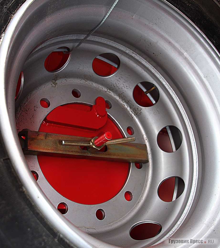 Закрепить колесо, как раньше, не получалось – не хватало места для его кантовки между кабиной и кузовом для попадания на крепежные шпильки. Пришлось сделать хитроумный самоцентрирующийся крюк, который сам задает колесу правильное положение, стоит только попасть на него ободом. После этого водителю остаётся только закрепить запасное колесо единственным центральным «барашком» с фиксирующей планкой.