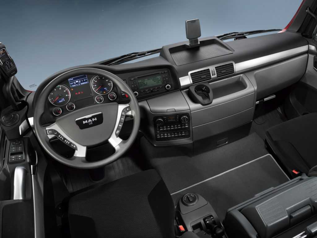 В новом поколении грузовиков MAN предлагает девять различных кабин. Самые большие из них три: GX, GM и GN. Для дальних перевозок лучший вариант GX и GM шириной 2,44 метра. Благодаря низкорасположенному трансмиссионному туннелю высота кабины GM 1,87 м, в GX и того больше – 2,07 м. Третий вариант кабины – GN – тоже большой, но предназначен для конкретных видов работ (например, автовоз), а потому оснащается невысокой крышей. Внутренняя высота кабины GN 1,57 м.