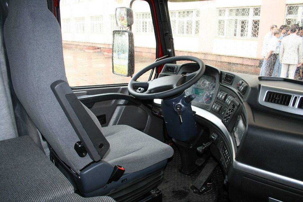 Рестайл проходил регулярно в этих моделях. Изменения коснулись практически всего, если сравнивать с ранними вариантами «6422». Современный тягач выглядит очень прилично. В первую очередь заметно изменилась форма кабины снаружи, обтекаемые формы, пользовавшиеся популярностью в период 60-70-х годов, были упразднены. Считавшееся эффективным лобовое стекло, состоящее из двух частей, исчезло, вместо него – панорамное, и это значительно улучшило обзор. Смотрим на передок и замечаем отсутствие огромного бампера, его отсутствие уменьшает безопасность, но добавляет презентабельности автомобилю. Вместо него появился бампер с меньшими габаритами, на котором теперь размещаются фарные блоки.
