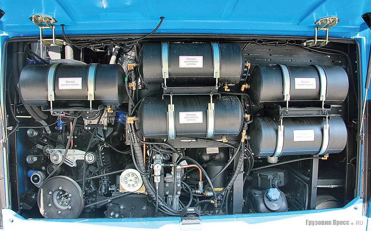 На сжиженном газе работает восьмицилиндровый двигатель КамАЗ-820.61-260 мощностью 260 л. с. объемом 11,76 л с турбонаддувом.