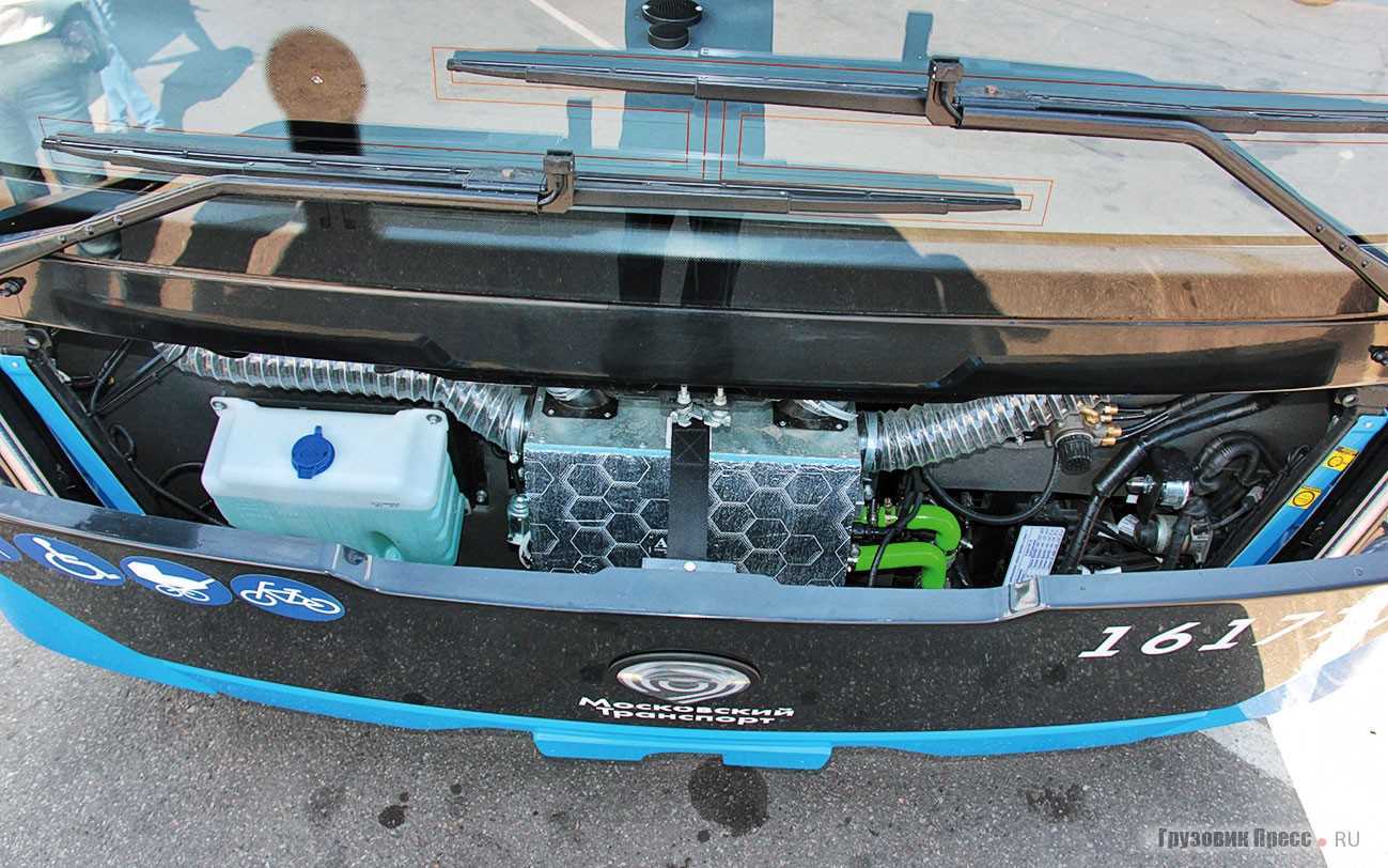 Тепло от автономного жидкостного или газового отопителя, который одновременно является предпусковым подогревателем двигателя, распределяется по салону равномерно, потому что элементы системы располагаются по периметру автобуса.