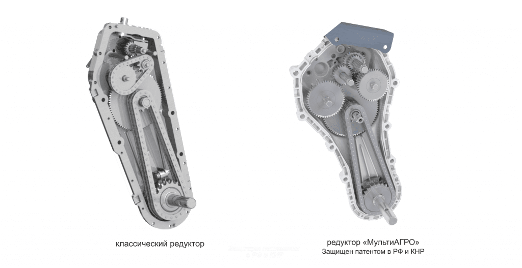 Схема в разрезе классического редуктора и МультиАгро показывает основные отличия устройства редукторов.