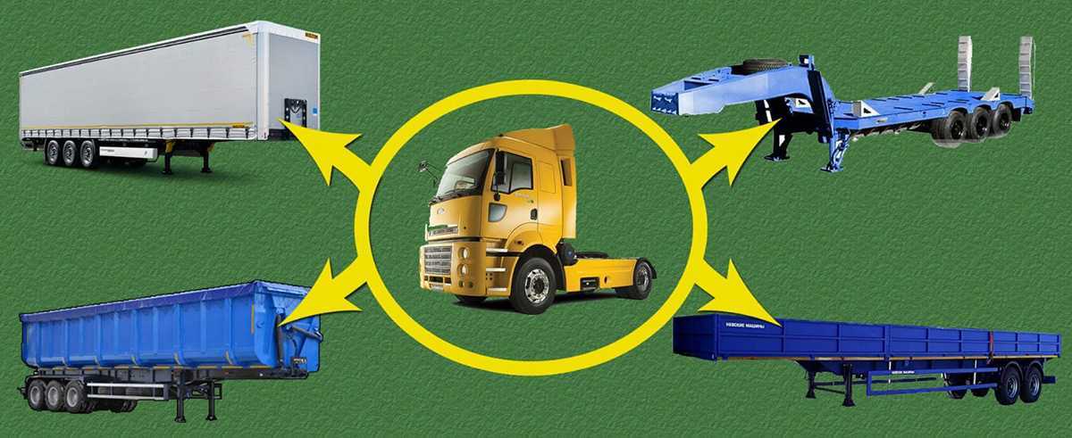 Грузоподъемность техники зависит от типа кузова и количества осей. Прицепы и полуприцепы для грузовых автомобилей бывают:
