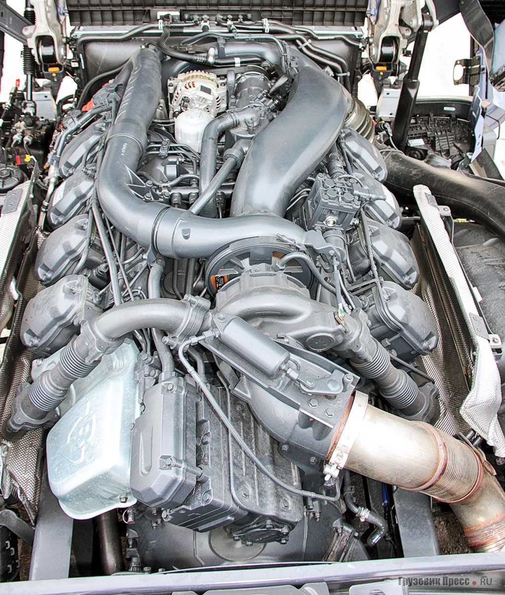 У меня возник закономерный вопрос о возрасте конструкции V-образного D16, установленного на предмете сегодняшнего теста. Опасения не подтвердились. Мотор относительно новый, просто иная сегментация автомобиля. Естественно, что при регулярных перевозках тяжёлых грузов даже мощный мотор, но меньшего рабочего объёма, будет трудиться с большей нагрузкой.