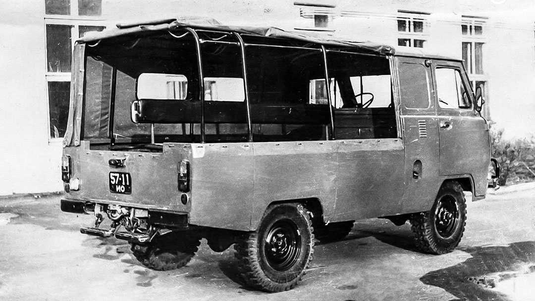 В 1955 г. на Ульяновском машиностроительном заводе началась лишь проекция УАЗа. Рассчитывалось создать транспортное средство, имеющее грузоподъемность в 800 кг. В качестве шасси использовался ГАЗ-69. При проектировании возникли проблемы. Шасси ГАЗА-69 оказалось коротковатым, размещать на нем почти тонну груза было просто неосуществимо. Потребовалась вагонная компоновка кузова. Разработчики сконструировали два типа УАЗА: